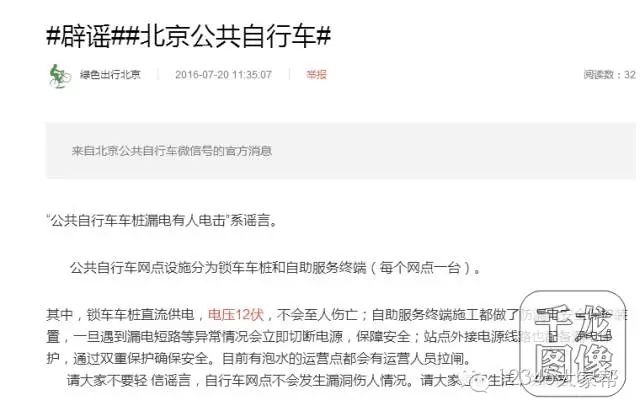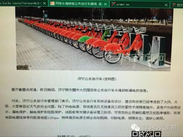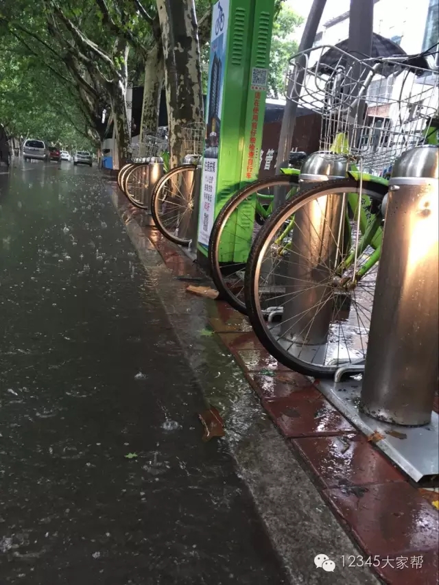 好了,朋友們,公共自行車在雨中,是不帶電的,只帶雨水。